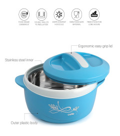 3. Cello Sapphire | Insulated Inner Steel Casserole | BPA Free | Food Grade | Serving 1500ml, Blue( Free Shipping Worldwide )