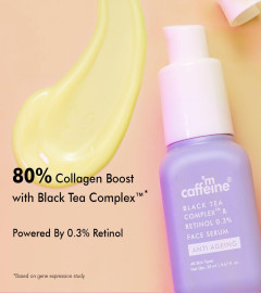 "80% COLLAGEN BOOST: Collagen is the primary protein that provides strength, support and elasticity to the skin. The presence of Black Tea Complex boosts collagen by 80% and 0.3% Retinol in this serum assists in increasing collagen levels in the skin naturally for firmer skin. *Based on gene expression study"
