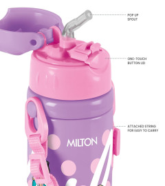 Presenting vacuum insulated bottles with one-touch button lid for your little