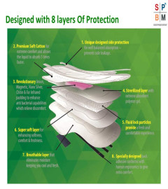 Sanitary Napkins designed with 8 layers of protection. With a premium packaging